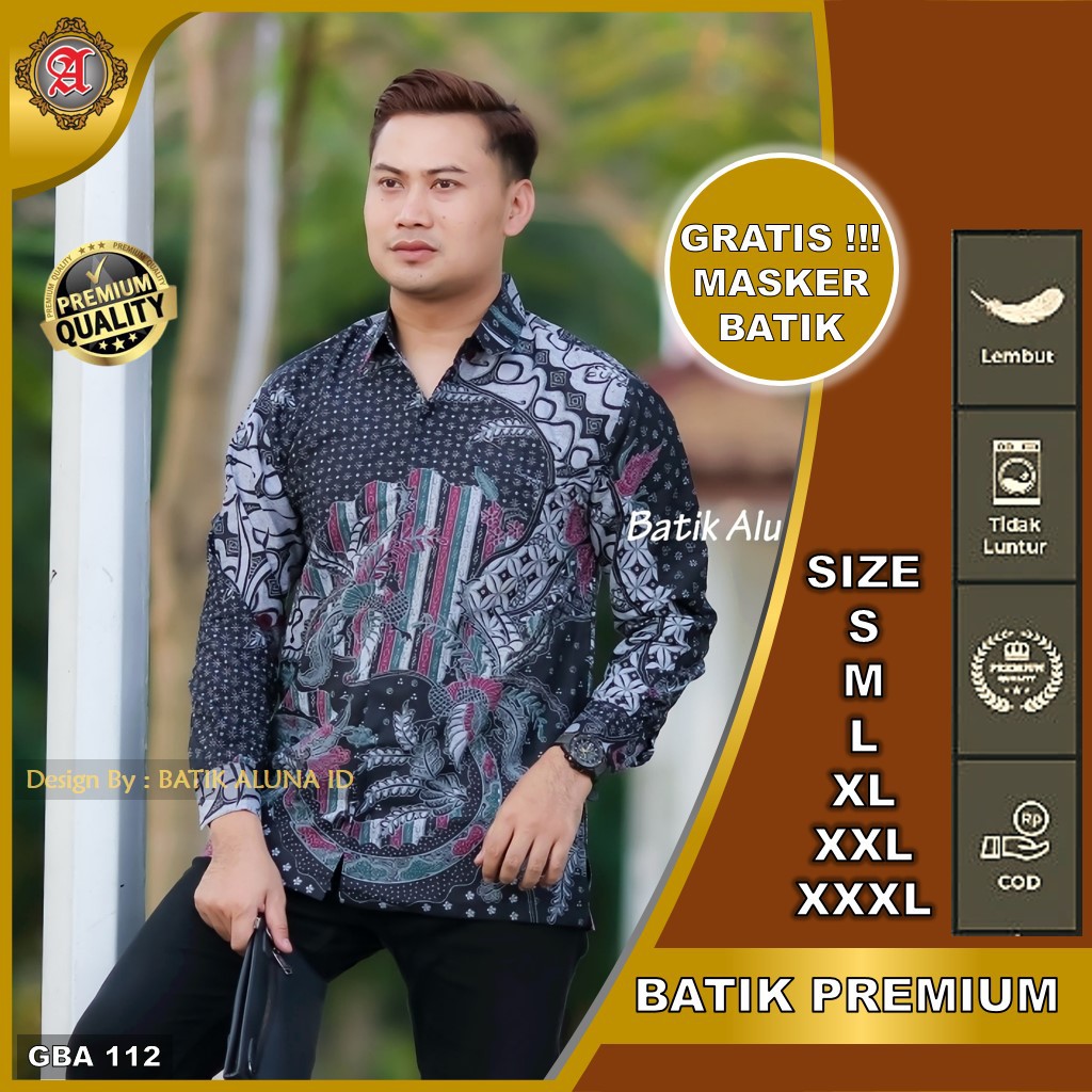 BATIK PRIA PREMIUM LENGAN PANJANG FULL FURING GBA 112 (FREE MASKER BATIK)