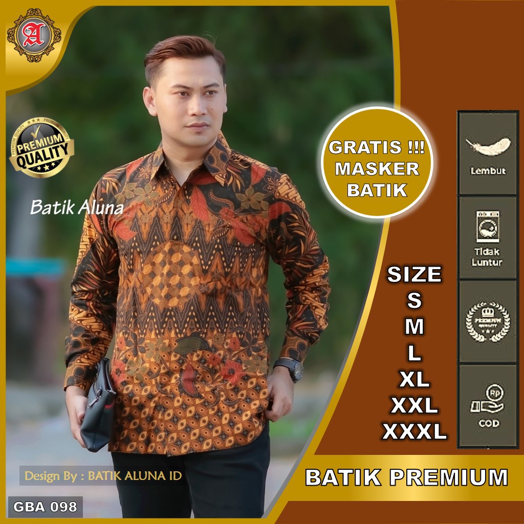 BATIK PRIA PREMIUM LENGAN PANJANG FULL FURING GBA 098 (FREE MASKER BATIK)