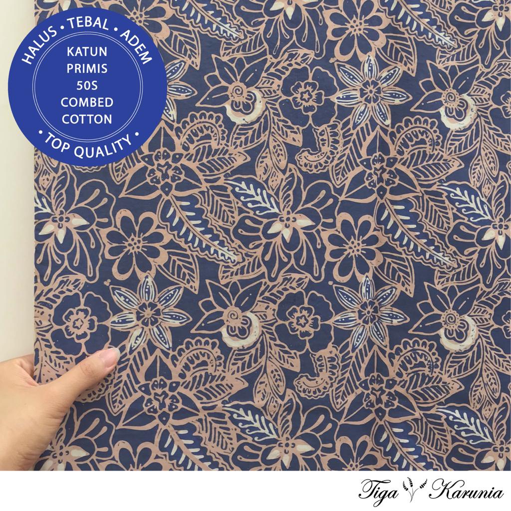 Flash Sale Pakaian W di Kabupaten Mukomuko Kain Batik Cap Semi Tulis Solo Premium 100% Handmade Bunga Navy Cream Katun Primis Super dari Batik Tiga Karunia Kota Surakarta (solo)