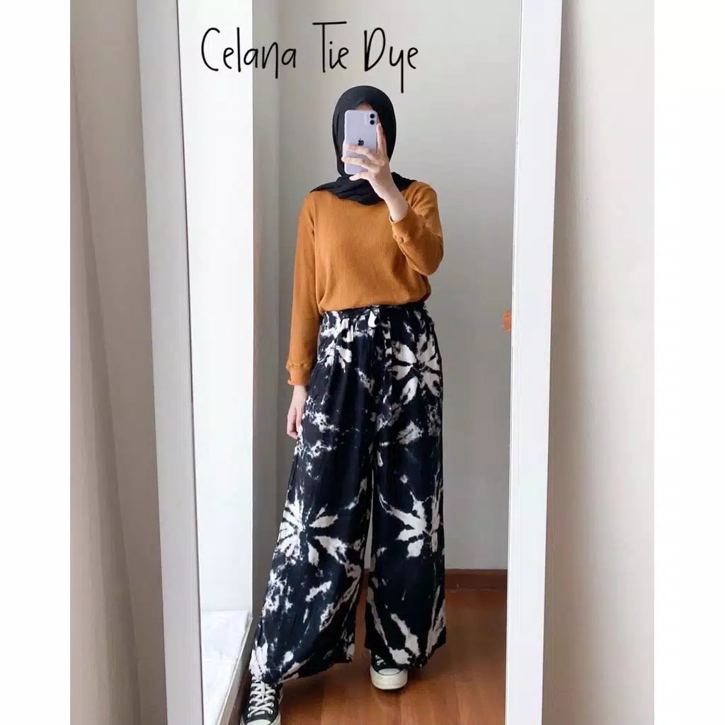 Name: Celana Tie Dye Jumputan Hitam Kulot Rayon Shibori Cantik Rayon Kekiniah Hits Gaul