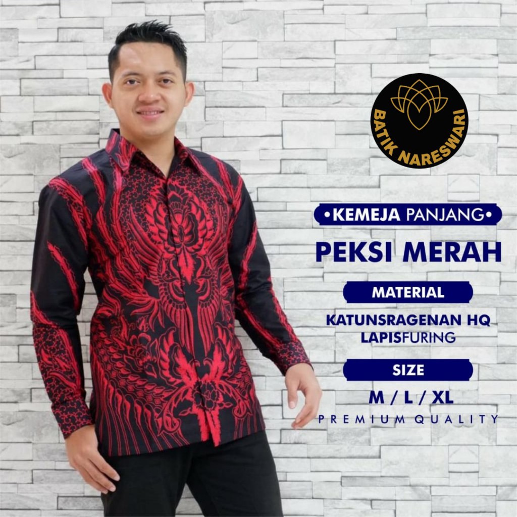 Name: (1kg=4pcs) Kemeja Batik Lengan Panjang Batik Ori Nareswari Peksi Merah Batik Solo Seragam Batik
