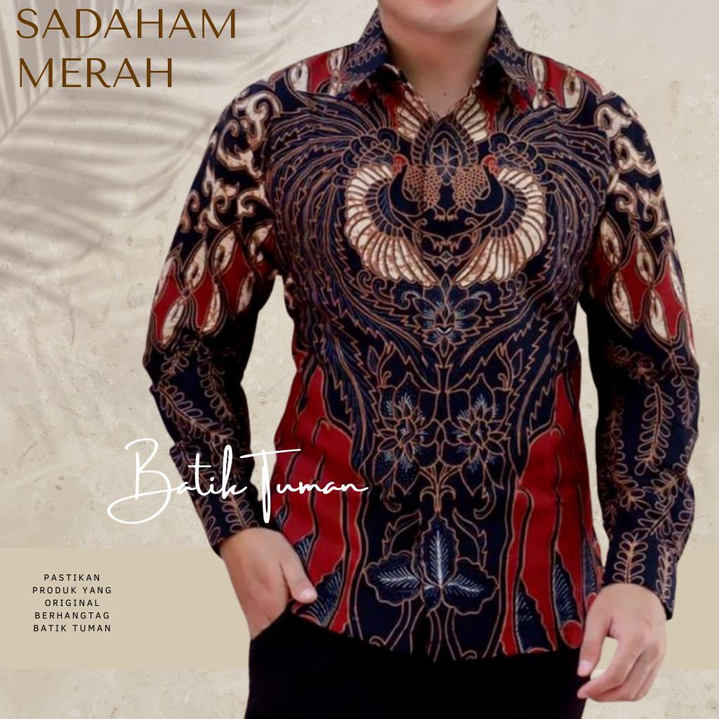 Name: Sadaham Merah Kemeja Batik Pria Lapis Furing Katun Primisima Batik Solo Kemeja Pria Lengan Panjang
